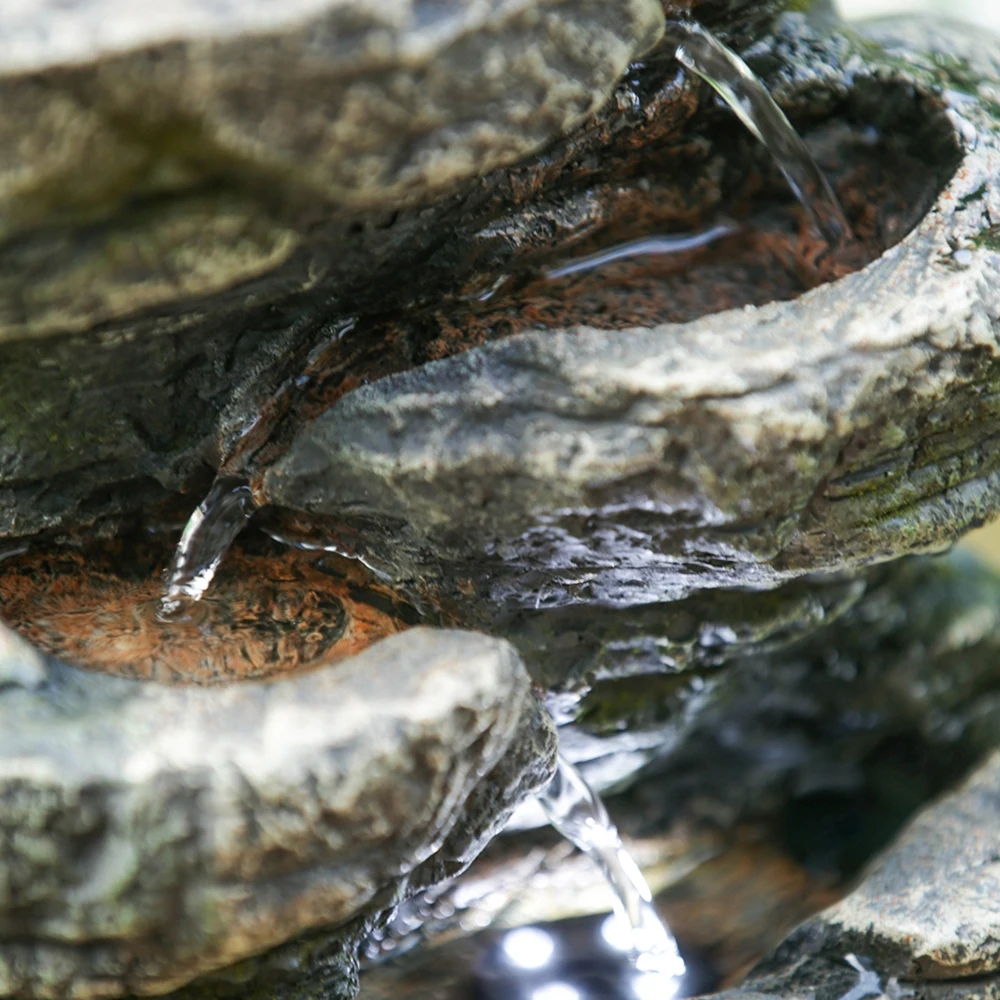 The petite natural cascading stone fountain with moss brings the realistic look and peaceful sound of a natural fountain to tabletops indoors and out. The natural look of stone and moss is recreated here out of durable brown and green polyresin. The compact size allows for a tranquil water feature wherever it’s needed.