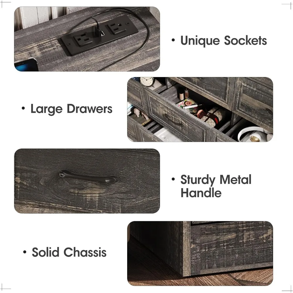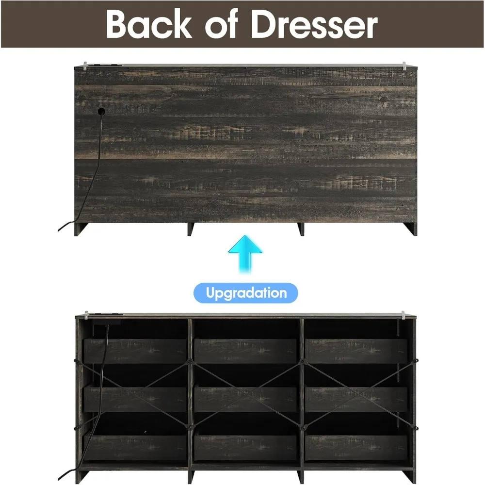 - NEW UPGRADE: This dresser adds a back panel to the product with charging station and still has no increase in price. The back is supported using a single plank of wood, no longer using iron pipes. Not only does this increase the stability of the dresser, it also prevents dust from falling and stops critters from getting in.