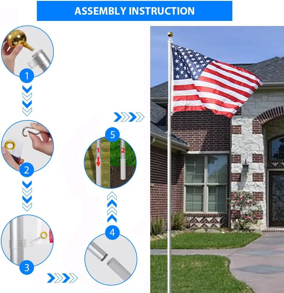【High-Quality Materials】This flag pole is made of high-quality, durable aluminum. Heavy duty gauge aluminum tube is durable, rust-proof, and strong enough for the yard, house, residential, outdoor, and commercial use.