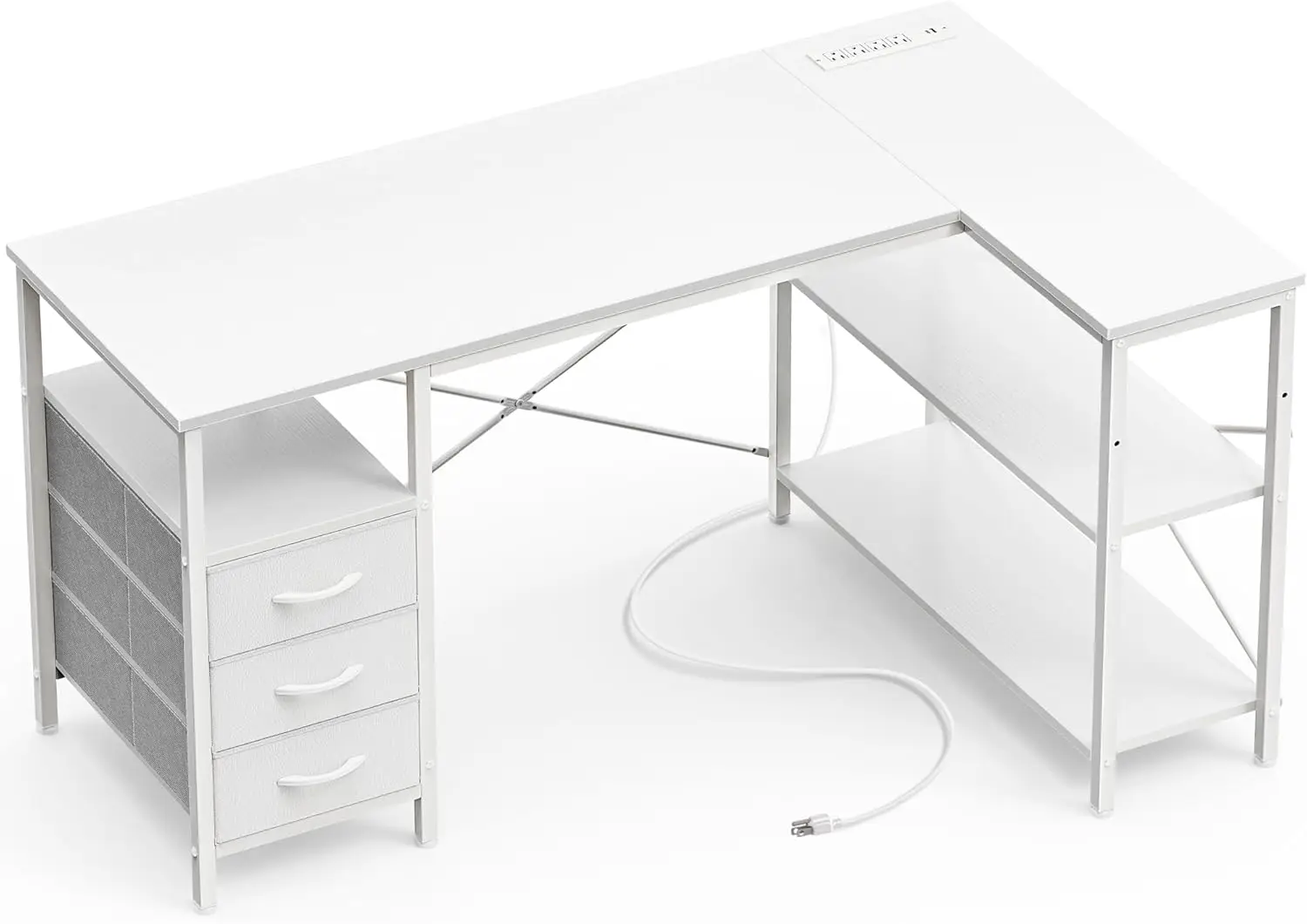 1. 【L Desk with Power Outlets】Our home office desk comes with 4 AC outlets, 1 USB ports, and 1 Type-C port, so you can easily charge your devices, plug in your laptop, or connect your lamp without the hassle of finding an available socket. Keep your workspace clean and organized